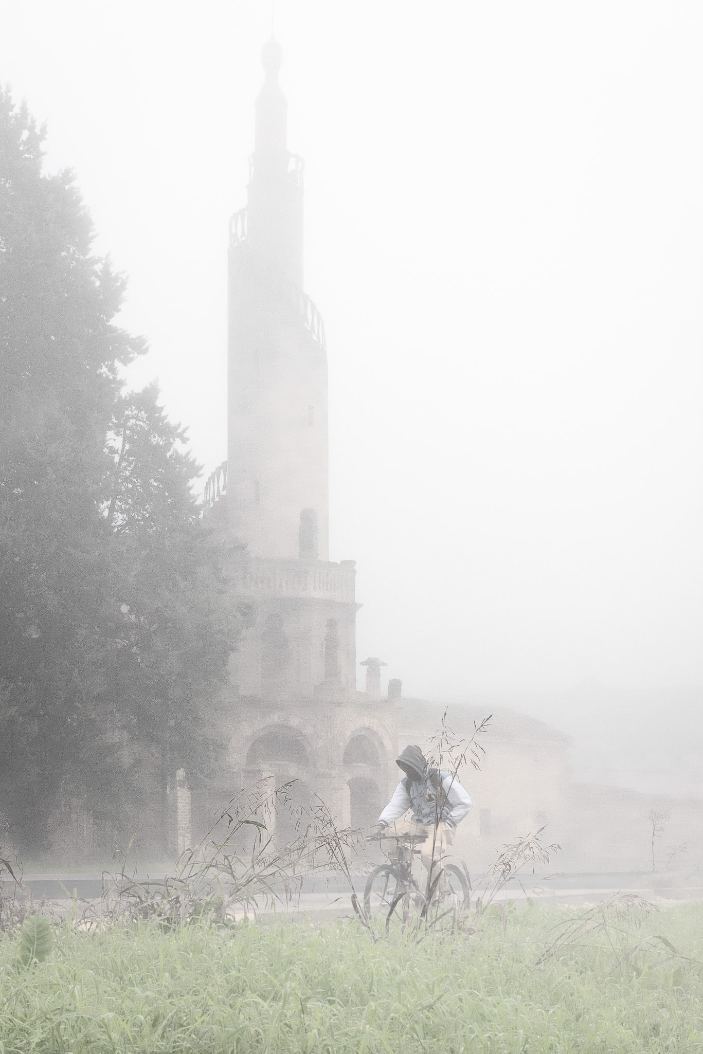 In questa dimensione del sogno che lambisce fossi e il grande fiume, nella soglia tra visibile e immaginato, le persone diventano sagome sfumate e la materia perde i propri contorni, in città come in campagna, lasciando spazio all'inaspettato.